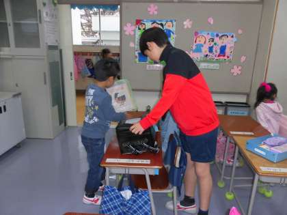 次の日ぁらは、靴箱の使い方、朝の支度のお手伝いをしてくれています。