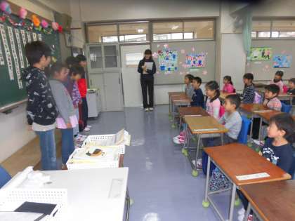1年生はみんなニコニコ、心はほっこり! 6年生のおかげです。