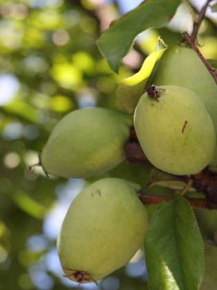 校庭に実っている果実です。左から姫リンゴ、夏ミカン、一番右はカリンの実です。ずいぶん大きくなりました。