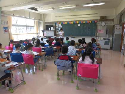 筆箱や教科書の置き方、授業の始まりや終わりの挨拶、お話の聞き方など、学習規律を確認しながら、授業を進めています。