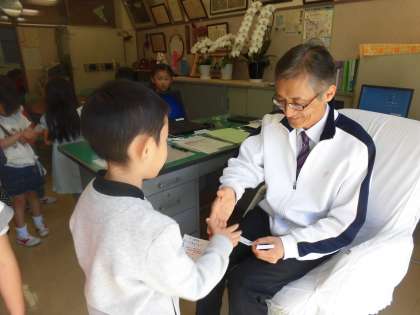 5月2日(金)は作戦3「先生方や主事さん方とあくしゅをしよう」です。