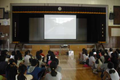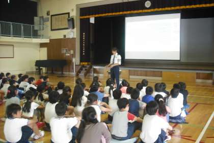 5年生の交通安全教室です。成城警察の方が講師をしてくださいました。みんな真剣にお話を聞き、映像を見ていました。