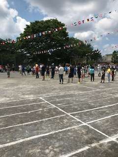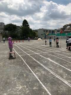 縄跳びをして、ネットをくぐって、風船を割って、輪投げをしたら、ゴールです。