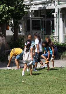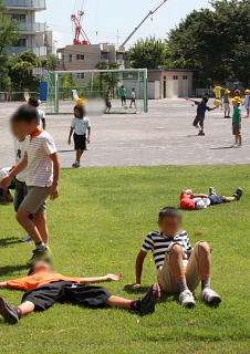 芝生の上にごろんと横になって、空を見上げ、友達と話している子もいました。靴のまま入ってもいいのですが、なぜか靴を脱ぐ子が続出。「裸足の方が気持ちいいから」ということでした。
