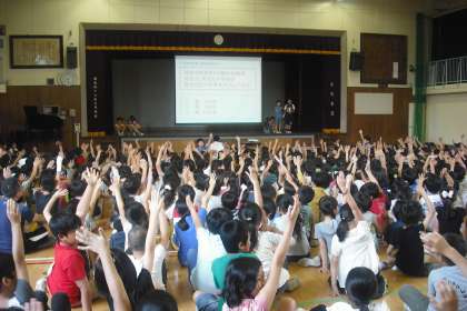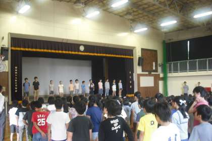集会では希望丘小に関する問題を答えたり、最後には校歌を歌ったりしました。