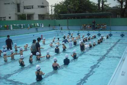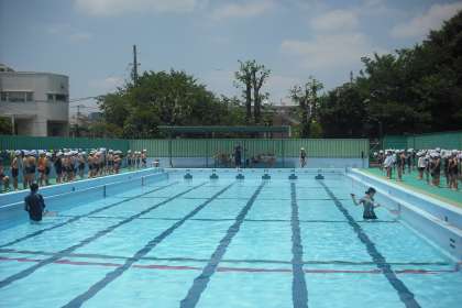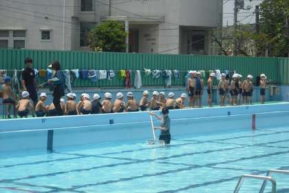 今年度の水泳指導が始まりました。最初にプールに入ったのは1年生でした。先生方の話をよく聞き、安全に楽しくプールに入ることができました。