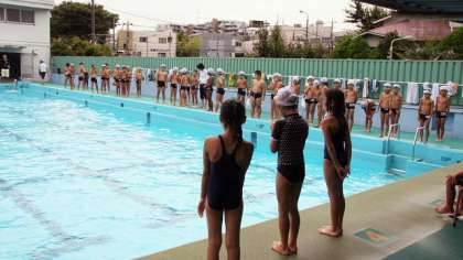 10日1・2校時、3・4年生がプール納めをしました。暑い日が続いているといってもやはり9月。午前中の早いうちは気温も若干低めで、日差しがかげると少し肌寒く感じたようですが、子どもたちは元気いっぱい。児童代表が、今シーズンの成果を述べてしめくくりました。なんとなく名残惜しそうな雰囲気でした。