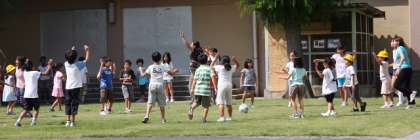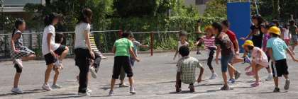 14日(火)、昨日お伝えしたダンス練習の続きです。20分休みに、今日も各学年縦割りの「希望っ子班」で全校ダンスジンギスカンの練習をしました。昨日のようすに比べて、今日は上手になっていると思いませんか?高学年の子どもたちが、一生懸命踊って、1・2年生に見本を示しています。担当の教員も一緒に踊っています。