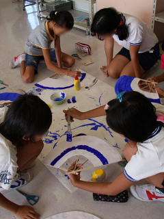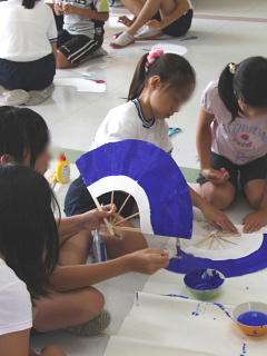 17日、5・6年生が運動会で踊る「みかぐら」に使う、扇子を手作りしました。経験のある6年生が5年生に親切丁寧に教えてくれたので、しっかりした扇子ができあがりました。自分の道具を手作りして、おどりの練習にも、これまで以上に気持ちがこもることと思います。