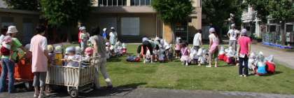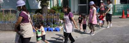 22日10時頃、希望丘保育園の避難訓練があり、保育園の第2避難所となっている本校の校庭に園児たちが避難してきました。1歳児から5歳児まで、保育園からの道のりをしっかり列をつくって歩き、校庭の芝生のところに集合した後もおしゃべりをせずにしっかり話を聞いていました。帰るとき「おせわになりました」とはっきりあいさつしてくれた子もいて、すばらしいと思いました。