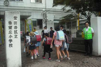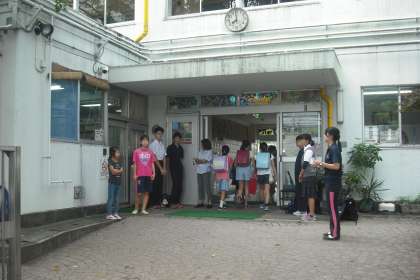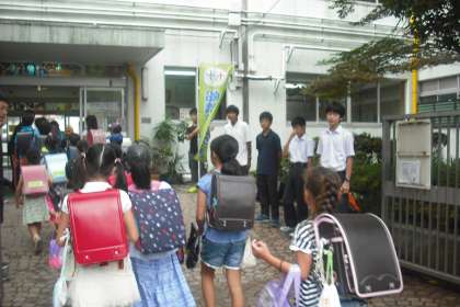 今週はあいさつキャンペーンで登校時に船橋希望中学校の生徒の皆さんが正門で迎えてくれました。また町づくりセンターの方にも来ていただき、朝から元気のよい声が響いていました。