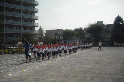 全学年が揃っての、初めての全体練習が行われました。歌練習、準備体操、応援合戦、行進練習と多くの内容でしたが、集中して練習していました。素晴らしかったです。