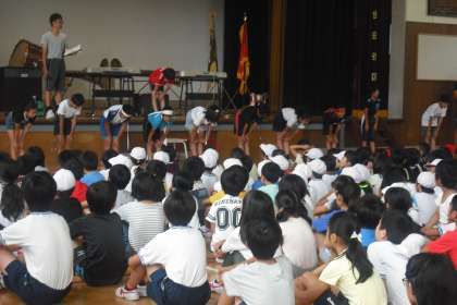 最後の全体練習は雨になってしまいまいました。体育館での練習になりましたが、充実した練習になりました。練習内容は開会式・閉会式の練習、行進練習、歌の練習そして整理体操です。