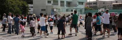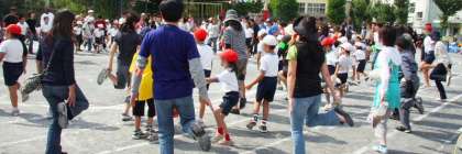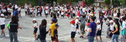 午前中の締めは、全員参加による全校ダンス「ジンギスカン」です。「希望っ子班」で輪をつくり、家族、来賓の方にも加わっていただき、みんなで踊りました。