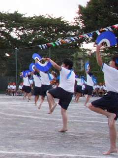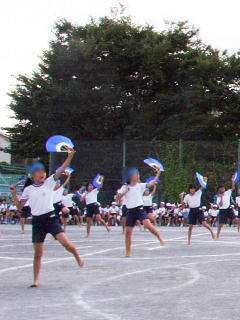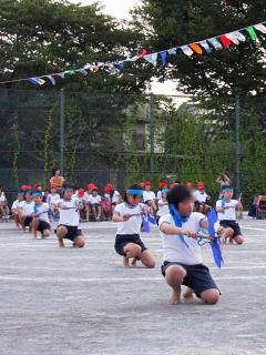 5年生もこの短期間でよくがんばり、踊りをマスターしました。扇がきれいにまわっていました。見てください、このりりしい姿。1年から4年生までがあこがれる演技に成長しています。希望丘小に伝わる大切な宝物です。