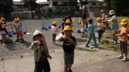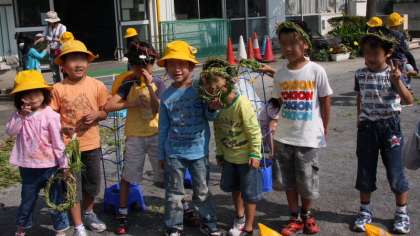 6日水曜日、1年生がリース作りをしました。子どもたちが育てたアサガオの種をとった後、ツルから枯れた葉をとり、それを丸めて作りました。保護者の方にもお手伝いしていただき、おかげさまでみんな上手に作れました。見てください、本当にうれしそうですよね。お忙しいところお手伝いいただきありがとうございました。