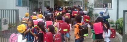14日の朝の登校のようすです。今週は「あいさつ週間」のため、毎日ようすをお知らせしています。正門前の横断歩道には学校主事が毎朝立って、横断の安全を守っています。8時10分のチャイムと同時にそれまで玄関前で待機していた子どもたちが一斉に教室へ向かいます。玄関と各昇降口には専科教諭とのぞみ学級の教員が、「おはようございます」のあいさつで子どもたちを迎えます。教室では担任が待っています。これが本校の日課になっています。