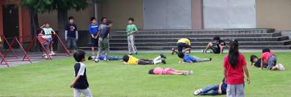今日の中休みは、1年生から6年生で編成している「希望っ子班」で遊びました。なわとびやおにごっこ、芝生でころがって遊ぶグループも。芝生はしばらくの間養生期間になっていましたが、今日から解禁です。子どもたちは大喜びです。