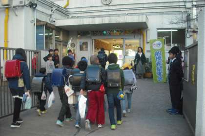 学舎の活動なので、船橋希望中学校の生徒も一緒にあいさつをしてくれいます。