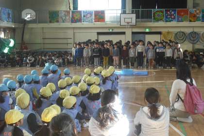 1年生は詩の発表を行いました。リズム感があり、園児たちも楽しく聴いていました。