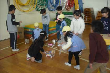2年生は手作りゲームをたくさん用意して、園児たちに楽しんでもらいました。