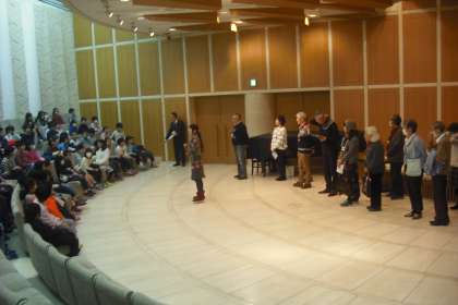 最初は鑑賞教室の説明です。それからグループに分かれて、案内をしてくださる方々にご挨拶です。