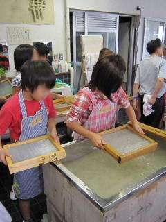 いよいよ緊張の一瞬。全員が2枚ずつ和紙を漉きました。ランチルームにもどり、お世話いただいた担当の皆さんにお礼を言って、お弁当を食べて帰りました。よい経験をさせていただきました。引率していただいた保護者の皆様にも感謝いたします。