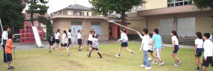 26日、明日に予定されている連合運動会に向けて、6年生が団体競技長なわとびの最後の練習をしました。みんなの元気で息のあった声が校庭に響きます。5分間とんで、記録は自己最高の400回を突破し、子どもたちは大喜び。明日へのよい景気づけになりました。がんばるぞ!