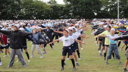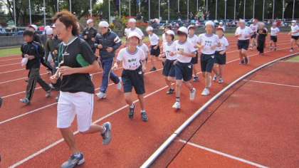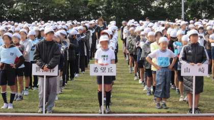 27日、6年生が砧の区陸上競技場に出かけ、連合運動会に参加してきました。昨晩からの急な冷え込みで、今日も朝から肌寒い中、本校の児童は半袖半ズボンの体育着姿で開会式にのぞみ、立派な態度でがんばりました。区内64校の区立小学校が三つのグループに分かれて行い、この日はBグループ21校が参加しました。準備運動の後、男女ごとに、一周400mのトラックを、みんなで走りました。