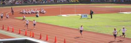 午前部の最後には、男女それぞれの100m×4人のリレーが行われ、かけつけてくださった保護者の方も一緒に大きな声援を送りました。また、午後の部にも、メインスタンドに陣取った応援席から、遠くで走っている友達に応援している、すてきな姿が見られました。たとえ声はとどかなくても、気持ちがとどいたことでしょう。