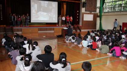 29日、今日の集会は4年生の発表です。体育館で大スクリーンに写真を映しだして発表しました。内容は先日出かけた「紙漉」の話題。その時の経験を元気よく原稿を見ないで発表できました。聞く態度も立派でした。