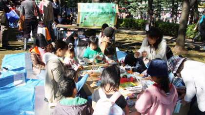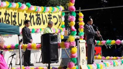 3日文化の日、秋晴れのもと、希望ヶ丘公園で、船橋地区町会・自治会連合会ふれあいまつり実行委員会主催の第21回「船橋ふれあいまつり」が開催されました。10時開会式。世田谷区長さん、区議会議長さんもお見えになってごあいさつ。区議会議員、関係機関や学校関係者も集まり、盛大に始まりました。本校の関係でも、PTA校外委員会のエコのリサイクルの手作り釣り堀コーナーと、いつもお世話になっている希望丘小学校遊び場開放委員会の模擬店が出て、たくさんの人で賑わっていました。
