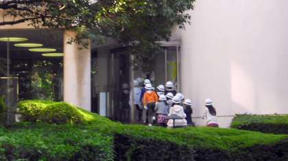 9日(火)は5年生社会科見学でした。朝8時集合で、貸し切りバスに乗って出かけました。最初は京浜工業地帯扇島「JFEスチール東日本製鉄所」です。残念ながら工場内の写真は撮影禁止ですので、入り口から入るヘルメット姿の写真だけです。小さい(といっても大きいのですが)真っ赤な鉄のかたまりがローラーを通って板状になっていくようすなどを見学しました。とてもわかりやすい説明で、工業を支える鉄製品の作り方がよくわかりました。