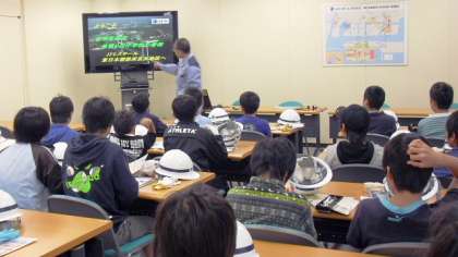 上の写真は見学前に説明を受けているところです。次に向かったのは「東芝科学館」です。電気製品に関することや、それらに使われている技術について実演や体験を通して学ぶことができました。