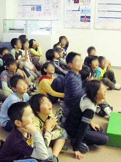 東芝科学館で楽しく学ぶ子どもたちのようすです。