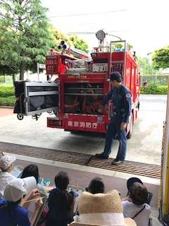 子供たちは、消防車の説明を聞きながら、いろいろな質問をしていました。