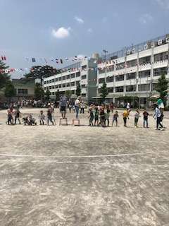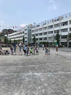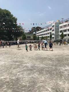 パン食い競争では、幼児の皆さんも保護者と一緒に頑張ってパンを取っていました。