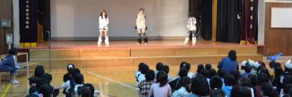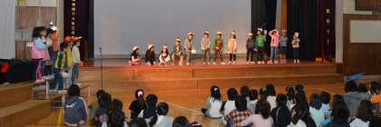 15日(月)、19日(金)、20日(土)に行われる「希望っ子発表会(学芸会)」に行う劇の演目の紹介をする集会を体育館で行いました。本番まで1週間をきったところで、各学年が一生懸命練習に取り組んでいます。準備も進み、なんとなく劇場の雰囲気が出てきた体育館のステージで、劇の題名や見所を紹介しました。