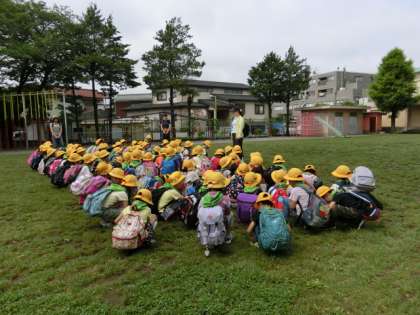 80人以上のこどもたちと先生で歩いて芦花公園に行きました。