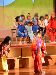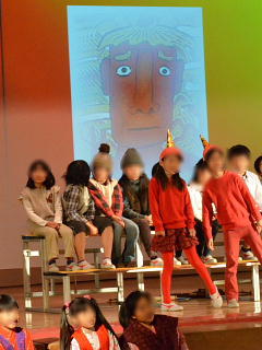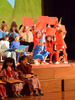 2年生 シュプレヒコール「泣いた赤おに」です。ご存じのお話「泣いた赤鬼」を構成劇にしました。友情がテーマのお話。心をうちます。
