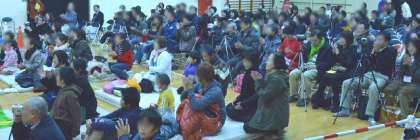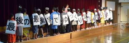 20日(土)、希望っ子発表会の2日目を行いました。朝早くから、多くの参観の皆様が会場の体育館をうめ、8時50分、予定通りスタート。校長あいさつの後、4年生のはじめの言葉とみんなでつくるメッセージ(写真中段)は「最後の最後までご覧ください」。会場の皆様がどっとわきました。