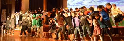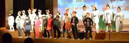 本日の劇のエンディング、上から1年、3年、6年です。どの学年も今日は家族や地域の方に見ていただいて大満足の様子でした。やり遂げた喜びが感じられます。自画自賛になりますが、みんながよくがんばった、内容の濃い、すばらしい学芸会ができました。衣装等で保護者の皆様にもお世話になりました。本当にありがとうございました。また、お忙しいところご参観いただいた地域、関係者の皆様、ありがとうございました。