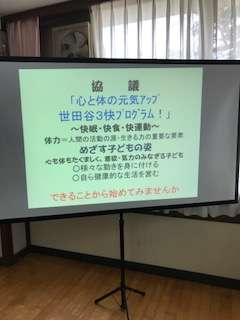 そして、本校の教職員から、快眠、快食、快運動についてと、本校児童の健康診断の結果について、報告させていただきました。