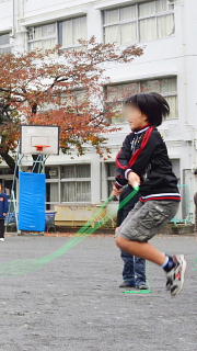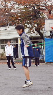 体育委員の見本です。後ろ跳び、あや跳び、交差跳びです。