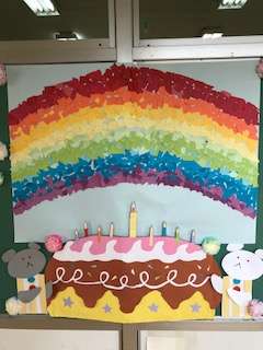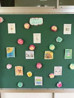 この写真は、本校の保護者約20名ほどが集まって活動している図書ボランティアの方々が作って下さいました。