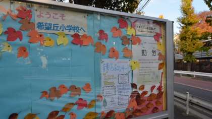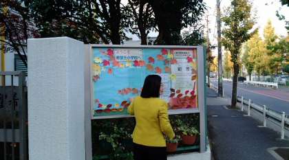 今日から12月。正門わきの掲示板もリニューアル。副校長が担当しています。