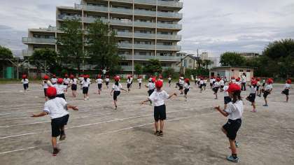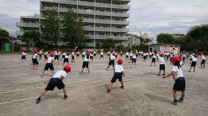 1年生は校庭でダンスの練習を行いました。踊る場所を確認し、振り付けのポイントを一つ一つ確かめながら練習しました。