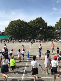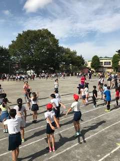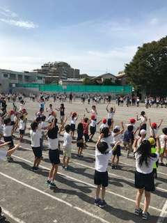全校朝会で、運動会で行うジンギスカンの練習をしました。