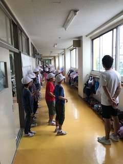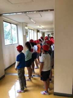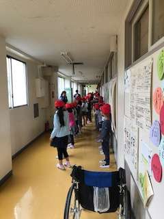 今日は、雨のため、全校での歌の練習は、廊下で行いました。