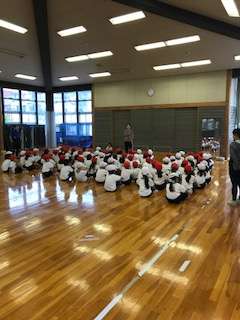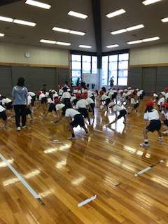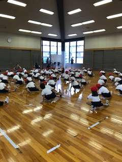 今日、1年生が初めて船橋希望中学校の格技室で運動会の練習をしました。